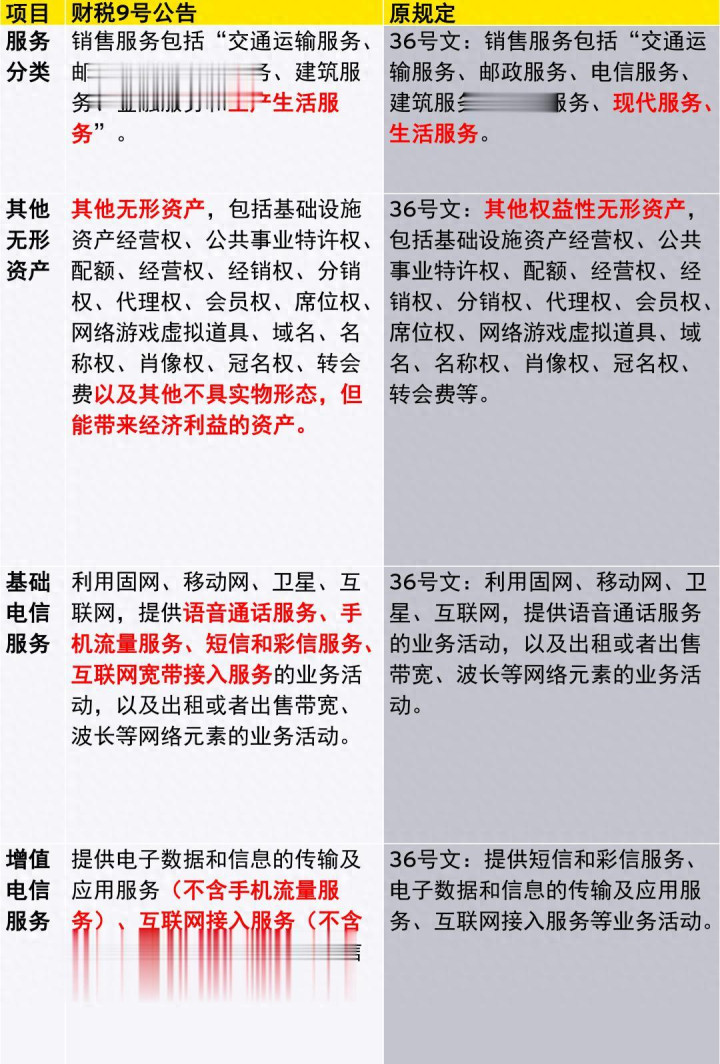 财税9号公告将原财税字[1995]52号《农业产品征税范围注释》、国税发[1993]151号《增值税部分货物征税范围注释》的内容,以及财税[2016]36号文(以下简称“36号文”)附件的销售服务、无形资产、不动产注释整合为《适用9%增值税税率货物范围注释》和《销售服务、无形资产、不动产注释》两个附件,细节变化值得关注。